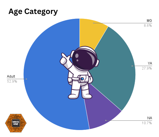 So with that cut, my list was down to: 3/12 Middle Grade: 25% 9/39 Young Adult: 23% 2/15 New Adult: 13% 12/74 Adult: 16% Total Longlist: 26/140