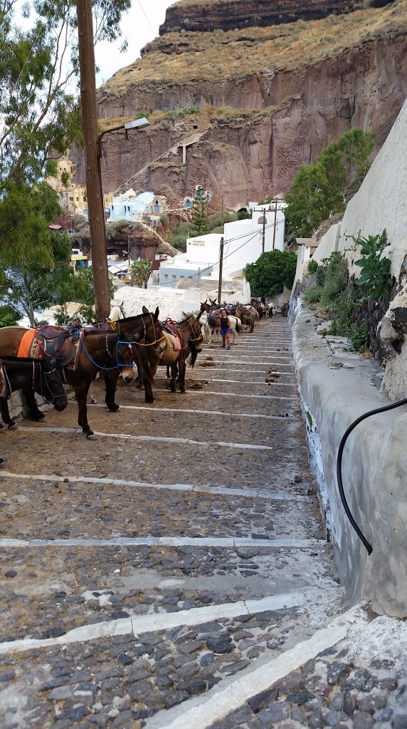 Notes: So we walked up the switchback cliff path instead of taking the cable car or taking a donkey. We were early enough that there was no traffic on the way up, but on the way down, I swear we were almost un-alived by a donkey stampede. (Mostly because I was laughing too much to properly get out of the way.) We walked from Oia to Thera along a 6 mi path carved into the cliffs and my husband wrote in his trip journal: “The views were probably the best I’ve ever seen on any hike.” (And the man grew up in Hawaii, you all, so this is saying something.)