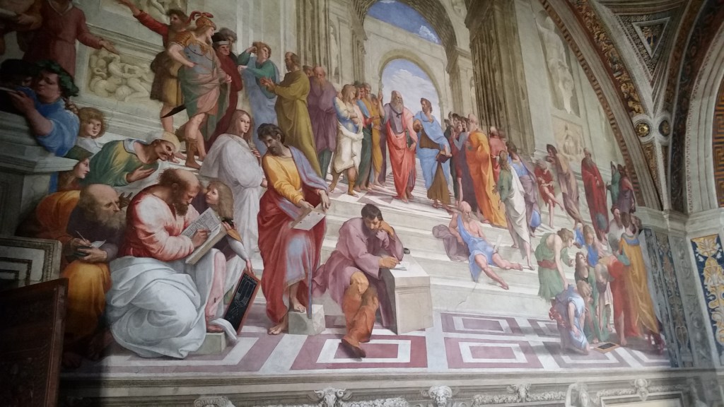 Notes: Rome —a seamless blend of ancient and modern—is a city of famous things that are worth the hype, and it’s pretty easy to navigate via the metro and sturdy walking shoes. St. Peter’s Basilica, the Vatican, St. Peter’s Square, the Sistine Chapel, and other artworks there (I love Raphael’s “School of Athens” fresco) are breathtaking. Also, Alice Pizza nearby is a solid eat. Next was the Colosseum, Palatine Hill, and the Pantheon (where we found a classical a capella group making excellent use of the dome’s acoustics.) We walked up to Trevi fountain, but unfortunately it was mostly obscured by construction. (I have seen it before, but I wasn’t unduly disappointed to miss it this time.) Next we walked to the Spanish Steps and the Piazza Navona fountains.